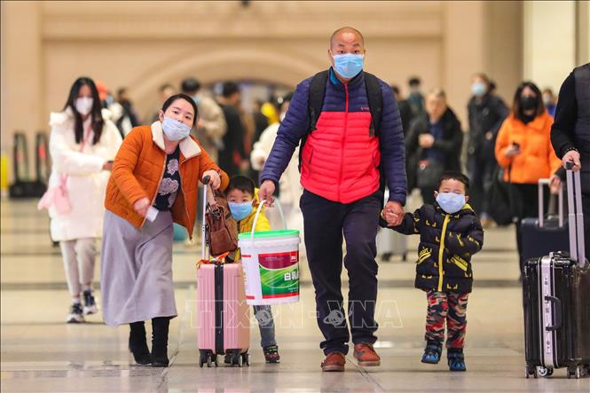 Hành khách đeo khẩu trang đề phòng lây nhiễm virus corona tại nhà ga Hankou ở Vũ Hán, Trung Quốc ngày 21/1/2020. - Ảnh: AFP/TTXVN |