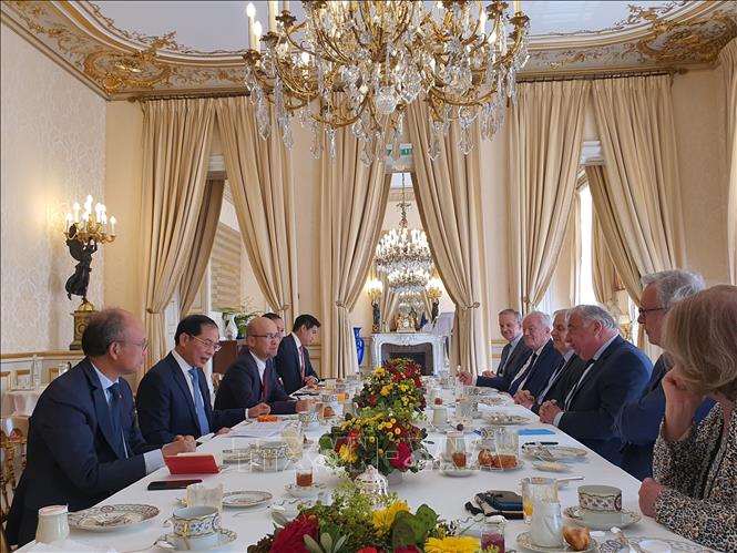 Bộ trưởng Ngoại giao Bùi Thanh Sơn tiếp kiến Chủ tịch Thượng viện Pháp Gérard Larcher, ngày 6/6/2023 tại trụ sở Thượng viện ở Paris - Ảnh: TTXVN |