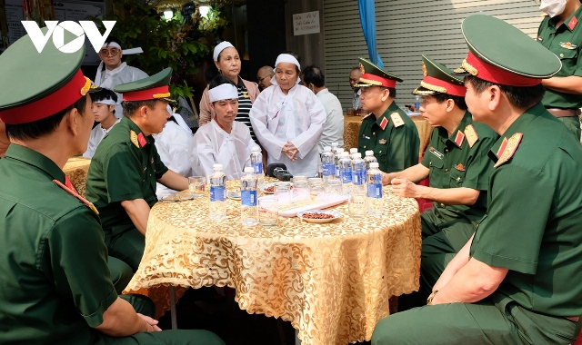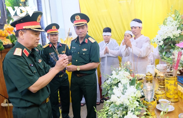 Trung tướng Thái Đại Ngọc (bìa trái) viếng nạn nhân tai nạn rơi máy bay trực thăng. Ảnh: VOV |