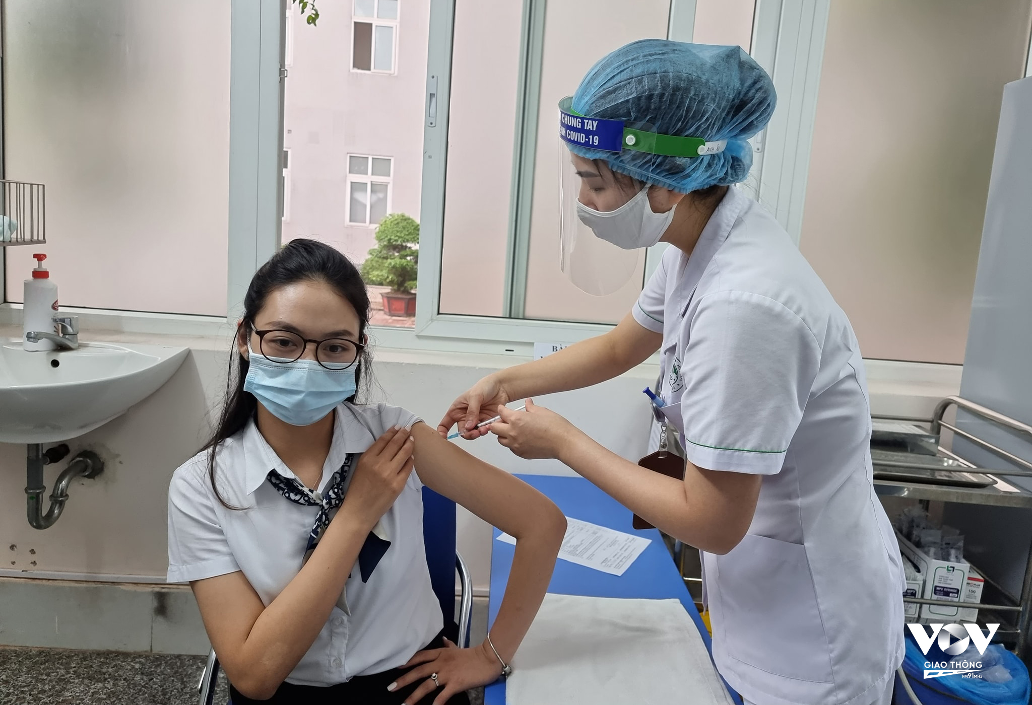 Công tác tiêm vắc xin COVID-19 tại Bệnh viện đa khoa Đức Giang, Hà Nội. Ảnh: VOV |