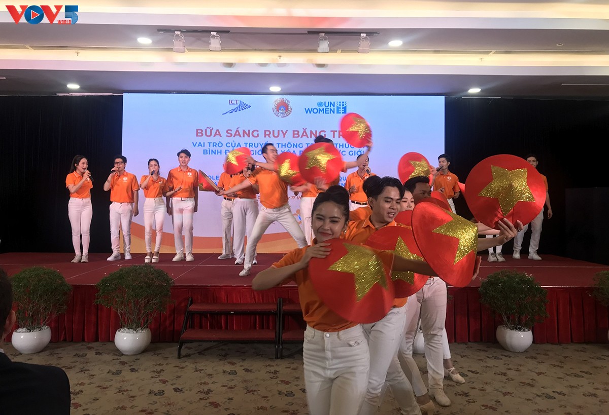 Tiết mục văn nghệ tại chương trình Bữa sáng Ruy băng trắng diễn ra sáng 17/11 tại TP. Hồ Chí Minh. Ảnh: Ngọc Xuân/VOV |