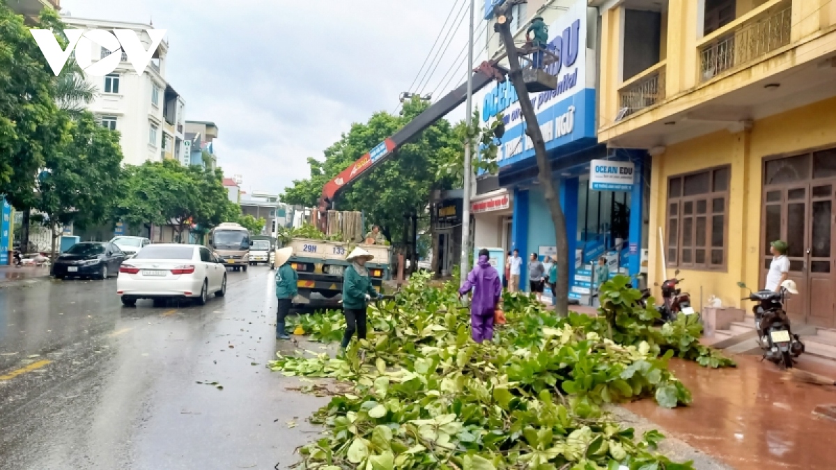 Thành phố Hạ Long cắt tỉa cây xanh hạn chế thiệt hại khi bão số Talim đổ bộ. Ảnh: VOV |