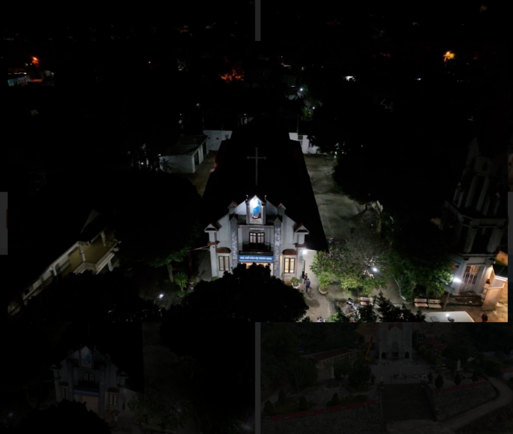 Nhà thờ Giáo họ Trung Minh, thành phố Hòa Bình nhìn từ trên cao - Ảnh: Ngọc Anh |