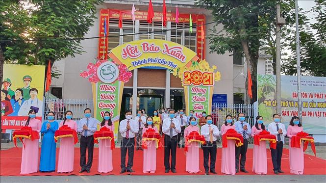 Các đại biểu cắt băng khai mạc Hội báo Xuân tại thành phố Cần Thơ - Ảnh: Ánh Tuyết/TTXVN |