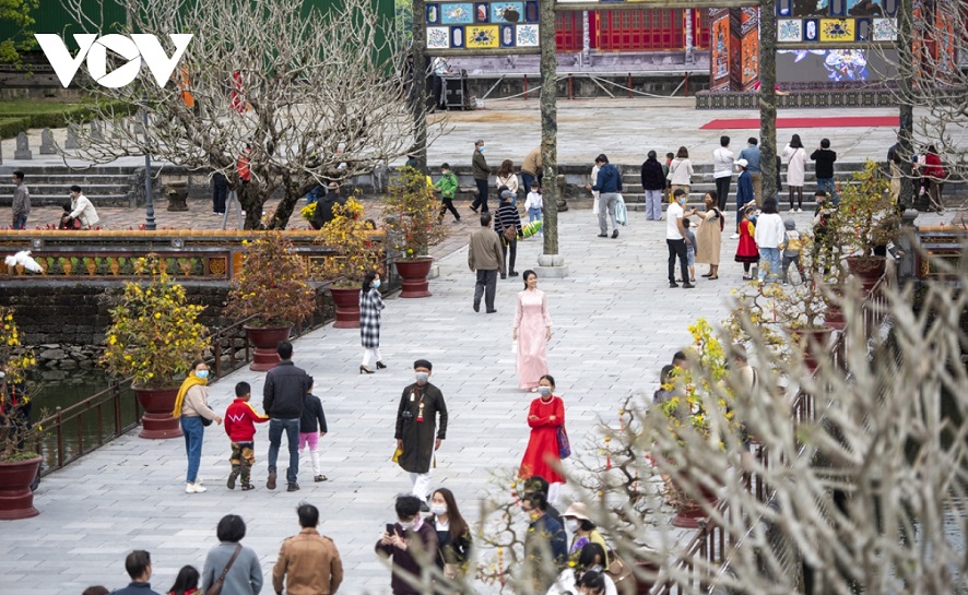 Người dân tham quan Di tích Cố đô Huế dịp đầu xuân Nhâm Dần 2022. Ảnh: VOV |