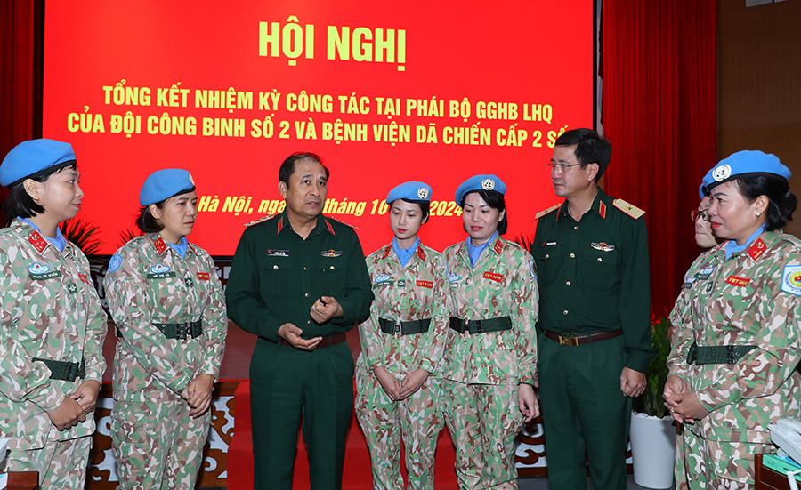 Sáng 16/10, Bộ Quốc phòng tổ chức hội nghị tổng kết nhiệm kỳ công tác tại phái bộ gìn giữ hòa bình Liên hợp quốc của Đội Công binh số 2 và Bệnh viện dã chiến cấp 2 số 5. Hội nghị được tổ chức theo hình thức trực tuyến với 2 điểm cầu Cục GGHB Việt Nam (Hà Nội) và Bệnh viện Quân y 175 (Thành phố Hồ Chí Minh).