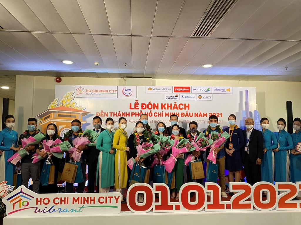 Sáng 1/1, các hãng hàng không trong Vietnam Airlines Group (Vietntam Airlines, Pacific Airlines, Vasco) đã phối hợp với 5 tỉnh, thành phố bao gồm Hà Nội, thành phố Hồ Chí Minh, Lâm Đồng, Thừa Thiên Huế, Đà Nẵng chào đón những vị khách đầu tiên trong năm 2021