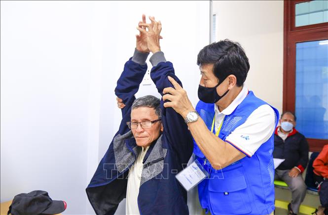 Các y, bác sỹ Bệnh viện Chung Ang khám bệnh cho người dân huyện Bình Sơn. Ảnh: TTXVN |