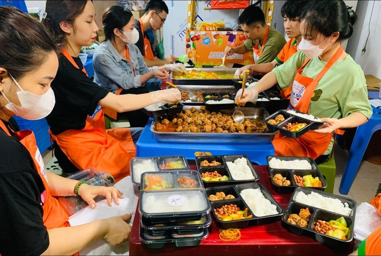 Việc bán cơm tại các bệnh viện khá đặc biệt. Đội hậu cần của CLB sẽ đến từng phòng bệnh để bán những "phiếu cơm" với giá 5.000 đồng/phiếu và khi đội bếp mang cơm đến, họ chỉ cần thu lại phiếu và phát cơm cho người mua. Theo chị Thu Trang, Phó Ban Truyền thông CLB, mỗi suất ăn sẽ bao gồm thịt lợn/thịt gà, canh, rau củ quả theo mùa, hoa quả tráng miệng,…