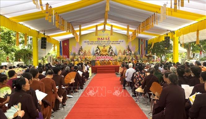 Đông đảo tăng ni phật tử tham dự lễ cầu siêu. Ảnh: TTXVN |