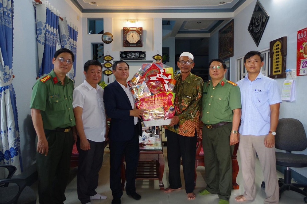 Sáng nay (2/3), Đại tá Huỳnh Tấn Hạnh, Giám đốc Công an tỉnh Ninh Thuận, đến thăm, tặng quà các chức sắc tôn giáo, người có uy tín trong cộng đồng trên địa bàn tỉnh Ninh Thuận, nhân dịp chuẩn bị đón Tết Ramưwan của đồng bào Chăm theo đạo Hồi giáo Bàni và Islam.