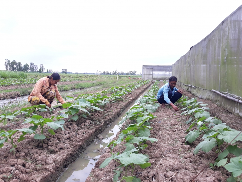 Ghé thăm gia đình anh Danh Giang, người dân tộc Khmer ở ấp Phú Ninh, xã An Ninh, huyện Châu Thành, một trong những hộ chuyên trồng rau, củ, quả và chăn nuôi bò. Anh Giang chia sẻ, cuộc sống gia đình trước đây cũng khó khăn, sau này, anh đã cải tạo gần 1ha đất sản xuất lúa để trồng màu kết hợp chăn nuôi. Để giúp gia đình phát triển kinh tế đạt hiệu quả, tăng thêm lợi nhuận trong sản xuất, ngành nông nghiệp địa phương đã hỗ trợ tập huấn về kỹ thuật trồng và hỗ trợ chi phí làm nhà lưới trồng màu và hệ thống tưới tiêu tự động. Từ đó từng bước giúp gia đình có nguồn thu ổn định, vươn lên thoát nghèo, trở thành hộ có thu nhập khá tại địa phương. Anh Danh Giang, chia sẻ: “Ở trong nhà lưới thì mình trồng thu lợi nhuận cao hơn. Thuận lợi hơn việc trồng ở ngoài nhà lưới vì mình không phải tưới nước bằng thủ công mà đã có hệ thống tưới tiêu tự động. xuống giống màu xong thì mình chỉ chờ đến thu hoạch. Rau trong nhà lưới cũng sạch, đẹp nữa, bán được giá hơn. Ví dụ như mình trồng ở ngoài giá 10 ngàn, thì trong nhà lưới mình có thể bán được 15 ngàn đồng/kg”.