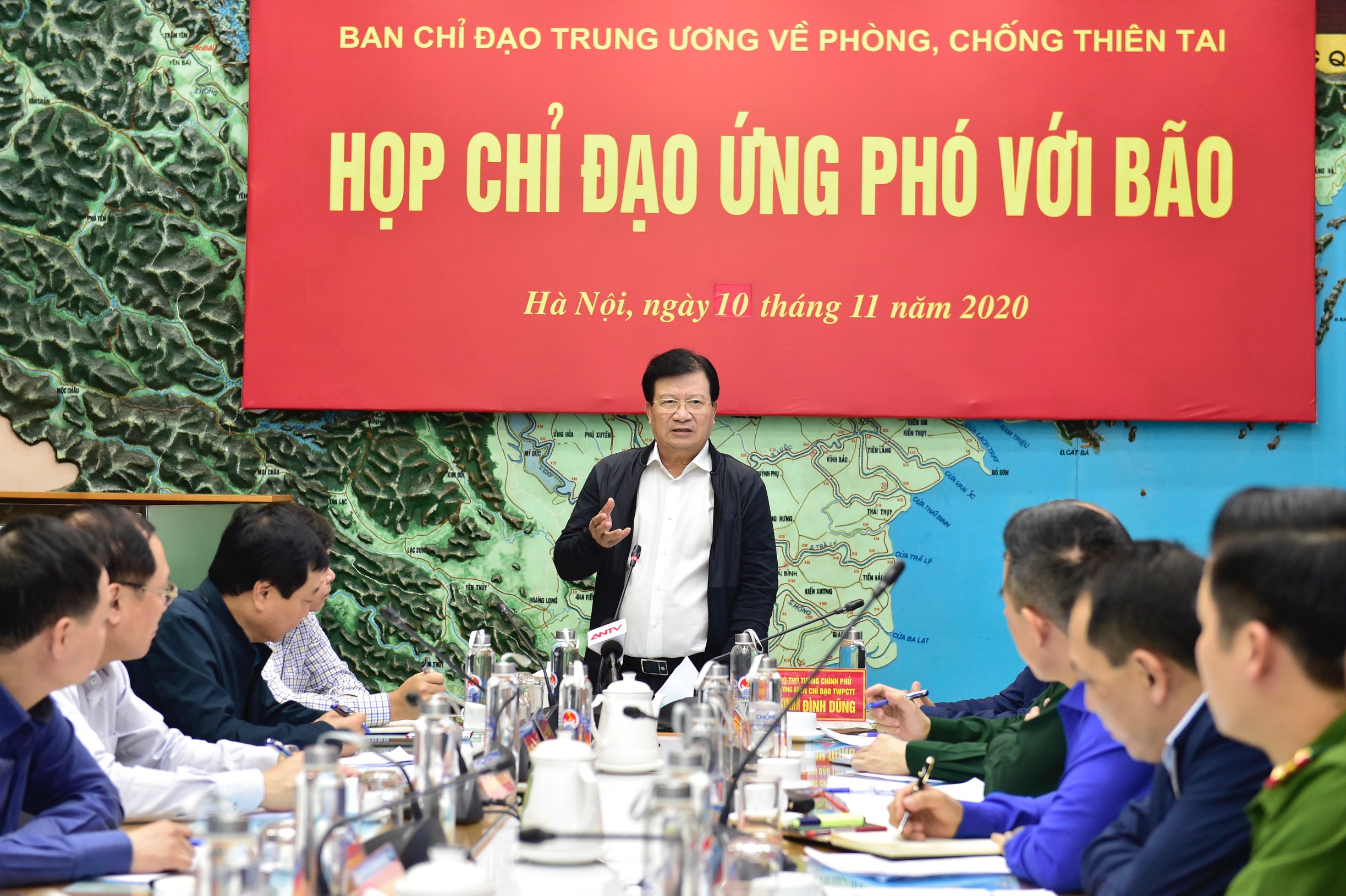 Phát biểu chỉ đạo cuộc họp ứng phó với bão Etau (số 12) và bão Vamco (số 13) sáng 10/11 tại Hà Nội, Phó Thủ tướng Chính phủ Trịnh Đình Dũng, Trưởng ban Chỉ đạo Trung ương về phòng, chống thiên tai, Chủ tịch Ủy ban quốc gia Ứng phó sự cố thiên tai và Tìm kiếm cứu nạn đề nghị các bộ, ngành, địa phương chịu ảnh hưởng bởi bão tiếp tục thực hiện tốt phương châm "4 tại chỗ" trong công tác ứng phó cũng như khắc phục hậu quả thiên tai.