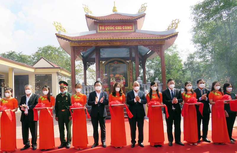 Chủ tịch nước Nguyễn Xuân Phúc dự lễ khánh thành Nhà bia ghi danh liệt sĩ thôn Hương Quế Nam. Ảnh: TN |