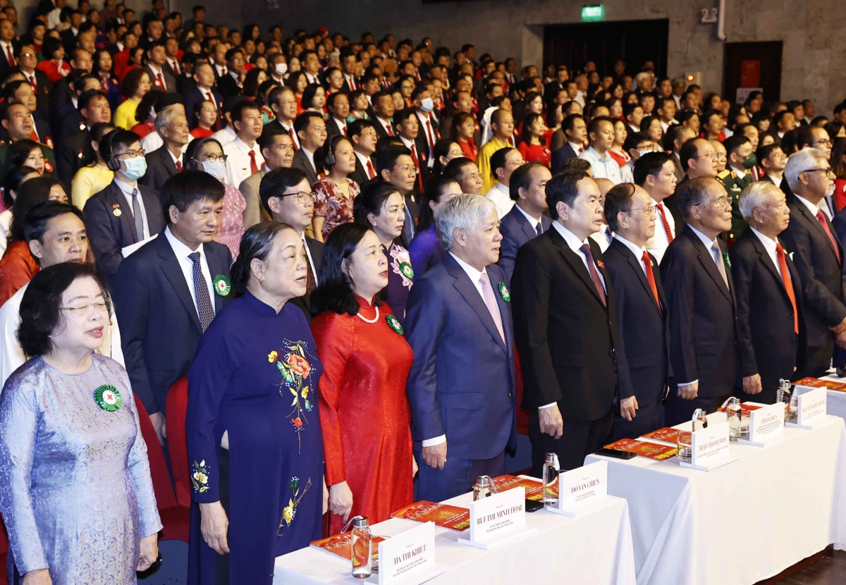 Các lãnh đạo Đảng, Nhà nước và đại biểu dự Đại hội. Ảnh: VOV |