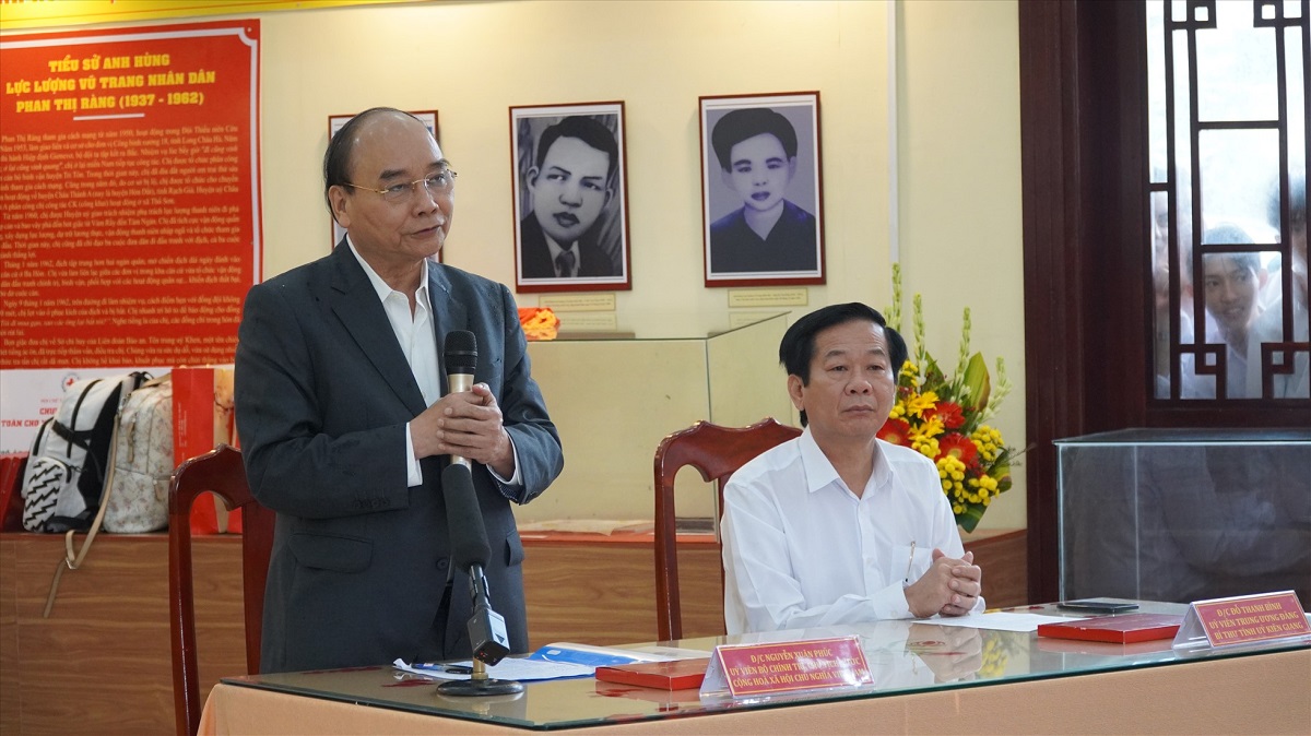 Nhân dịp về thăm Hòn Đất, Chủ tịch nước đã tới dâng hương tại Di tích Mộ Anh hùng lực lượng vũ trang nhân dân Phan Thị Ràng, xã Thổ Sơn.