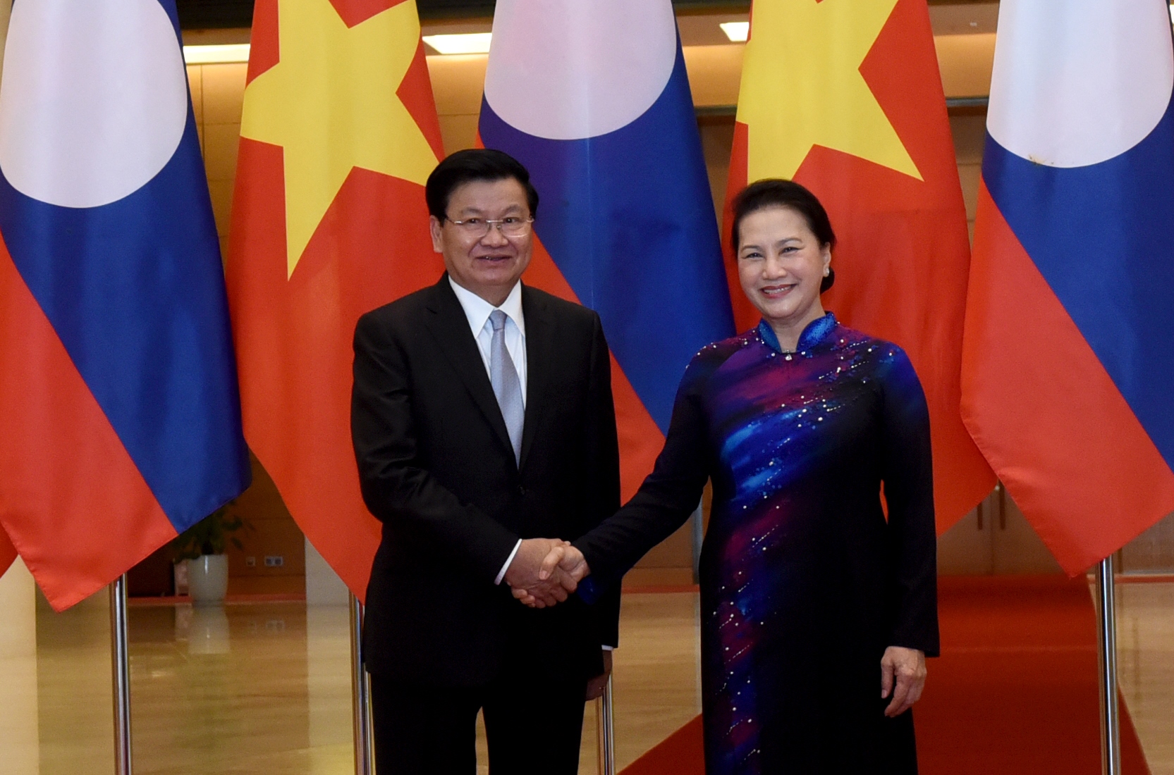 Về quan hệ hai nước, Chủ tịch Quốc hội Nguyễn Thị Kim Ngân nhiệt liệt chúc mừng các thành tựu quan trọng mà Đảng, Nhà nước và nhân dân Lào đạt được trong thời gian qua, đặc biệt là việc kiểm soát tốt dịch COVID-19 và khôi phục kinh tế-xã hội, giữ được tăng trưởng GDP dương ấn tượng (khoảng 3%).