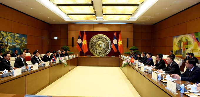 Về quan hệ hai Quốc hội, Chủ tịch Quốc hội đánh giá cao quan hệ hợp tác giữa Quốc hội hai nước ngày càng gắn bó chặt chẽ, hai bên đã phối hợp rất tốt trong các hoạt động của Quốc hội mỗi nước, đặc biệt là tại các diễn đàn nghị viện khu vực quốc tế như IPU, APPF; đồng thời cảm ơn Lào đã ủng hộ, tham gia các hoạt động ASEAN, AIPA trong năm 2020 do Việt Nam làm Chủ tịch.