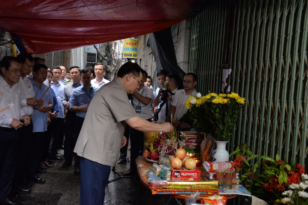 Chiều nay (15/9), Chủ tịch Quốc hội Vương Đình Huệ đến thắp hương các nạn nhân thiệt mạng do vụ cháy tại Chung cư mini phố Khương Hạ, phường Khương Đình, quận Thanh Xuân, Hà Nội, đêm 12/9.