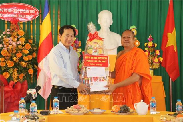 Sáng 9/4, lãnh đạo Thành phố Cần Thơ và đại diện các cơ quan, ban ngành đến thăm, chúc Tết Chôl Chnăm Thmây năm 2021 tại các cơ sở tôn giáo, thờ tự của đồng bào dân tộc Khmer trên địa bàn thành phố Cần Thơ. Tại các nơi đến thăm, lãnh đạo thành phố mong muốn đồng bào dân tộc Khmer mà nòng cốt là các vị hòa thượng, thượng tọa, đại đức, các vị A char, Ban quản trị các chùa... tiếp tục phát huy truyền thống đại đoàn kết toàn dân tộc, thực hiện tốt chủ trương, chính sách của Đảng và Nhà nước, nêu cao tinh thần tự lực tự cường, quyết tâm vươn lên, vượt qua mọi khó khăn thử thách, tích cực tham gia phong trào thi đua yêu nước, xây dựng nông thôn mới…