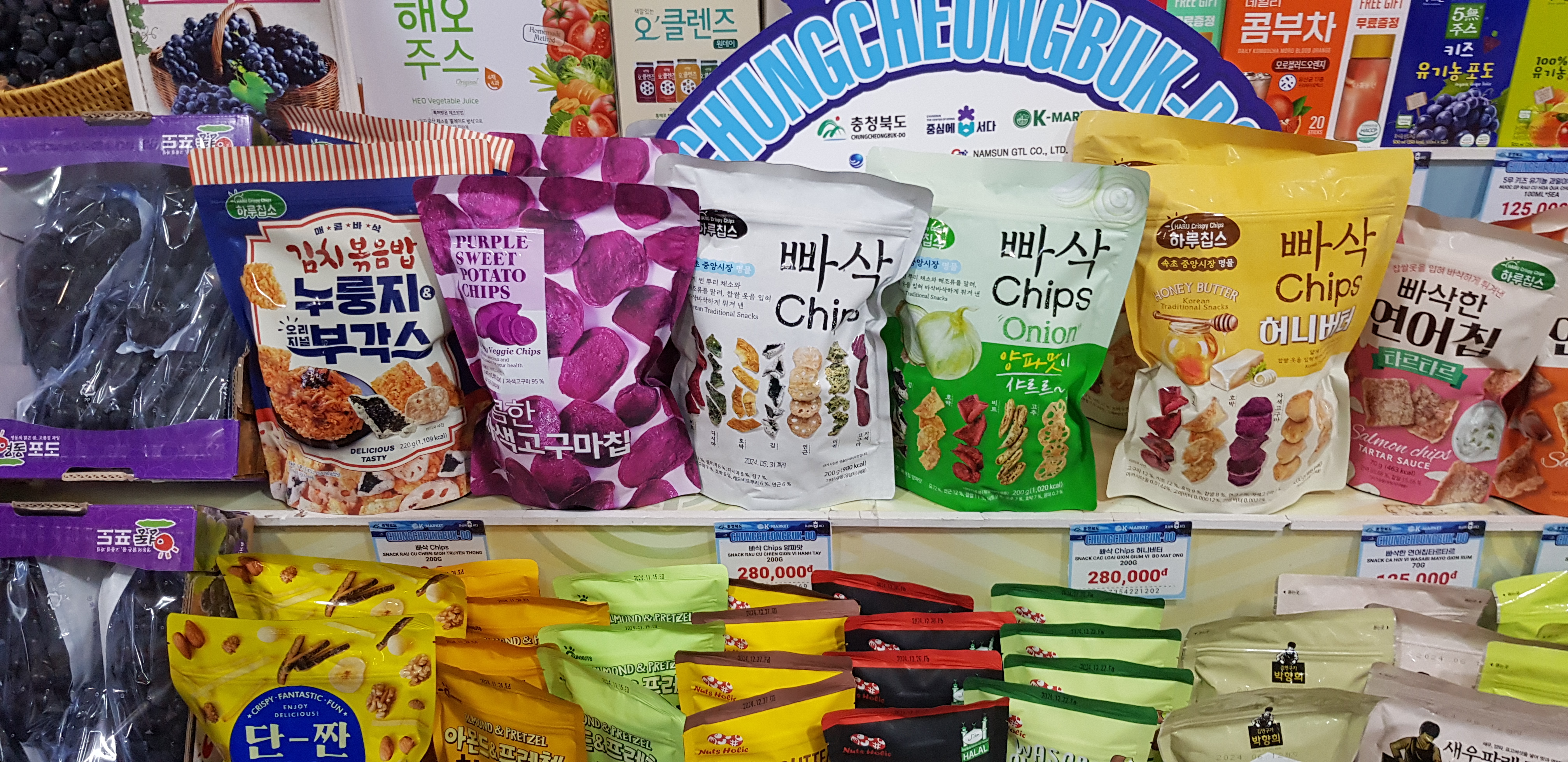 Chị Yong Mi-Sook, Trưởng phòng phân phối lưu thông nông sản tỉnh Chungcheongbuk-do (Hàn Quốc), cho biết: "Hiện tại, gian hàng này lần đầu tiên mở ở Việt Nam và duy nhất ở Hà Nội. Quầy trưng bày các sản phẩm nổi tiếng của tỉnh, như: nho, kim chi. Ngoài thực phẩm khô còn có thực phẩm đông lạnh, hạnh nhân, lá kim, rau củ ép, nước hoa quả, các loại trà, bánh gạo, gà tần sâm. Thị trường Việt Nam rất có tiềm năng, đặc biệt, các bạn trẻ thích đồ ăn Hàn Quốc. Vì thế, chúng tôi hy vọng có cơ hội kinh doanh phát triển ở Việt Nam."