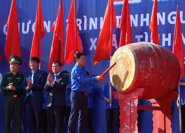 Anh Nguyễn Anh Tuấn, Chủ tịch Hội Liên hiệp Thanh niên Việt Nam, đánh trống phát động chương trình Tình nguyện mùa đông năm 2020 và Xuân tình nguyện 2021 |