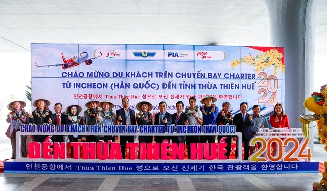 Đây là chuyến bay quốc tế đầu tiên đến Cảng Hàng không Quốc tế Phú Bài, tỉnh Thừa thiên Huế, đầu năm nay và là chuyến bay thứ hai từ Hàn Quốc đến Cố đô Huế sau chuyến bay đầu tiên hồi tháng 8 năm ngoái.