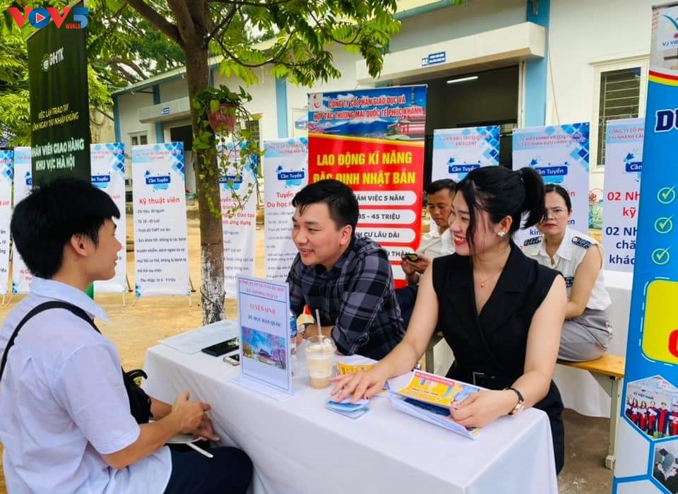 Người lao động tìm hiểu thông tin về việc làm tại Ngày hội. Ảnh: VOV |