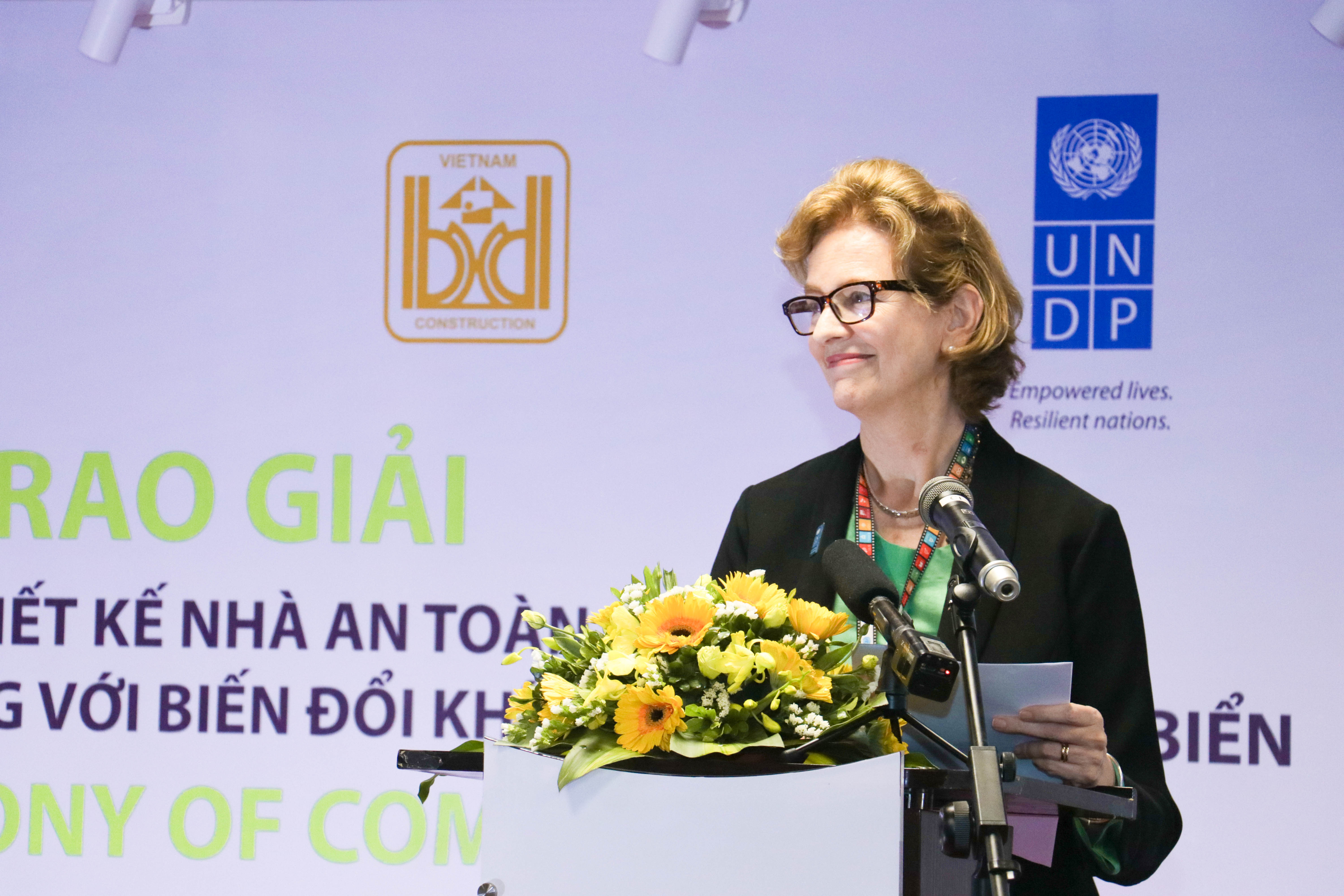 Phát biểu tại lễ trao giải, bà Caitlin Wiesen, Trưởng đại diện thường trú UNDP tại Việt Nam bày tỏ hy vọng rằng các thiết kế được chọn sẽ góp phần vào các chương trình nhà an toàn sắp tới của Chính phủ cho 28 tỉnh ven biển, có thể mang lại hiệu quả lâu dài trong việc giúp các gia đình thoát khỏi đói nghèo và đảm bảo an toàn về người và tài sản khi thiên tai xảy ra.