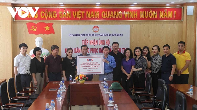 Tại đây, thay mặt đoàn công tác, ông Vũ Hải Quang đã trao 50 triệu đồng (khoảng 2.000 USD) cùng nhiều phần quà là các nhu yếu phẩm (sữa, thực phẩm ăn liền, thuốc chữa bệnh) và một số vật dụng thiết yếu cho đồng bào vùng thiên tai của huyện Nguyên Bình. Chia sẻ với những khó khăn, mất mát với đồng bào, nhân dân huyện Nguyên Bình, ông Vũ Hải Quang cho biết những phần quà ý nghĩa trên đã được cán bộ, phóng viên, biên tập viên, kỹ thuật viên, người lao động trong Đài TNVN cũng như các tổ chức, cá nhân, các nhà hảo tâm chung tay đóng góp. Điều này không chỉ thể hiện tinh thần tương thân, tương ái, đoàn kết, giúp đỡ lẫn nhau của dân tộc, mà với riêng Đài TNVN đó còn là sự tri ân đối với sự đùm bọc, giúp đỡ, che chở của đồng bào, nhân dân các dân tộc tỉnh Cao Bằng cho quá trình hoạt động, phát triển của Đài TNVN thời gian qua, nhất là trong thời kỳ kháng chiến.