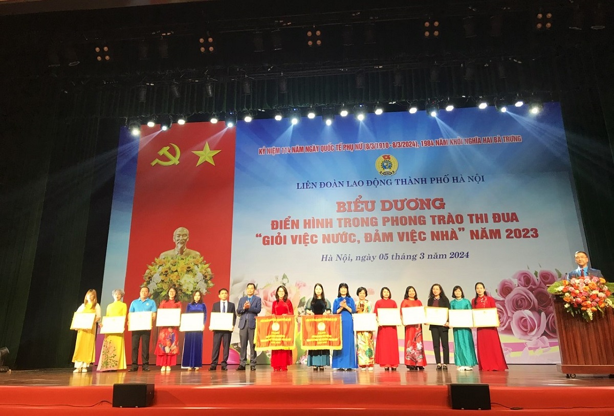 Nhân kỷ niệm 114 năm Ngày Quốc tế Phụ nữ 8/3 (1910-2024), tối qua (05/03), tại Hà Nội, Liên đoàn Lao động thành phố Hà Nội tổ chức Hội nghị biểu dương điển hình trong phong trào thi đua “Giỏi việc nước, đảm việc nhà” năm 2023.