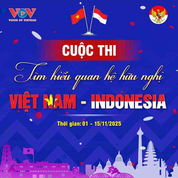 (VOV5) - Hướng tới dịp kỷ niệm 70 năm thiết lập quan hệ ngoại giao Việt Nam và Indonesia và kỷ niệm 80 năm quốc khánh hai nước, Đài Tiếng nói Việt Nam (Đài TNVN) phối hợp với Đại sứ quán Indonesia tại Việt Nam tổ chức Cuộc thi tìm hiểu quan hệ hợp tác Việt Nam - Indonesia.