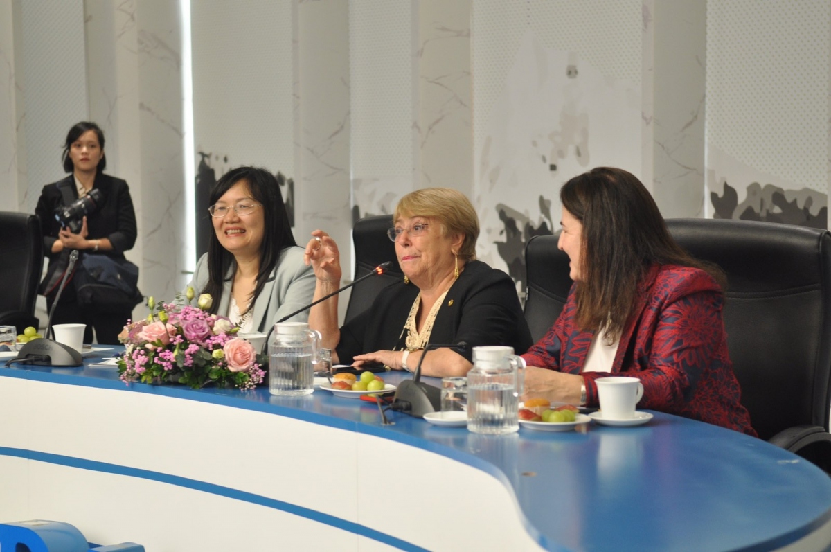 Cũng tại đây, Quyền Giám đốc Học viện Ngoại giao Phạm Lan Dung và Trưởng Đại diện Cơ quan Phụ nữ Liên hợp quốc tại Việt Nam, bà Eliza Fernandez, mong muốn cựu Tổng thống Chile Michelle Bachelet sẽ tiếp tục là tấm gương, là niềm cảm hứng phấn đấu cho các thế hệ phụ nữ ở các quốc gia trên thế giới và thông qua những hoạt động gặp gỡ, chia sẻ tương tự, vai trò, vị trí của phụ nữ, công tác phụ nữ và bình đẳng giới sẽ ngày càng được nhận thức đúng đắn, sớm thực hiện các mục tiêu bình đẳng giới và vì sự tiến bộ của phụ nữ.