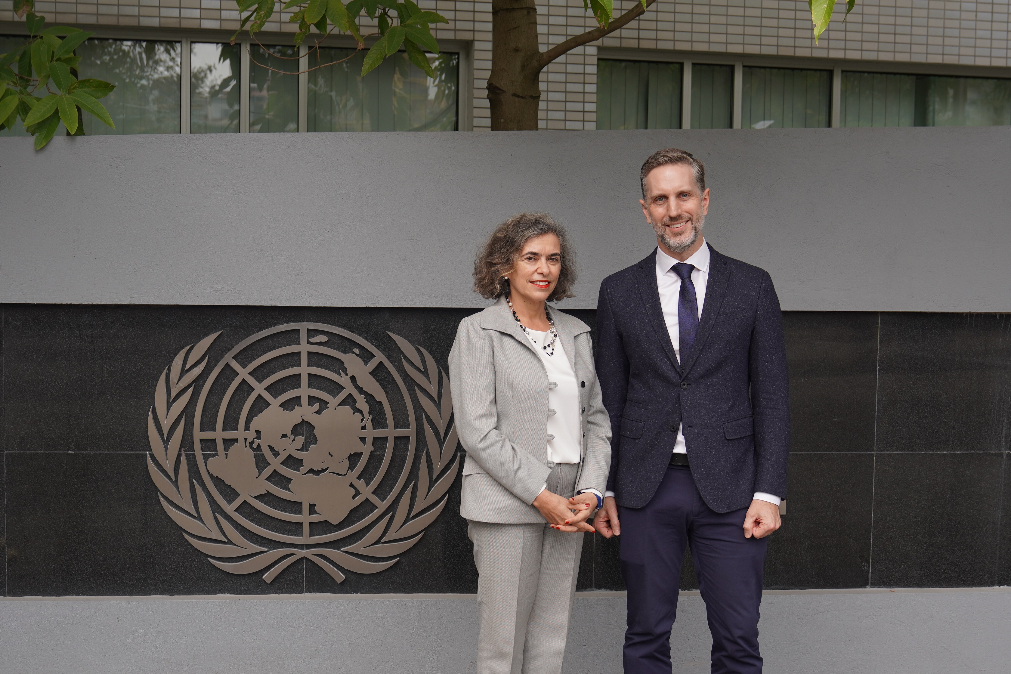 Đại sứ Tây Ban Nha tại Việt Nam Carmen Cano de Lasala và Trưởng Đại diện Quỹ Dân số Liên hợp quốc (UNFPA) Matt Jackson tại Ngôi nhà Xanh LHQ |