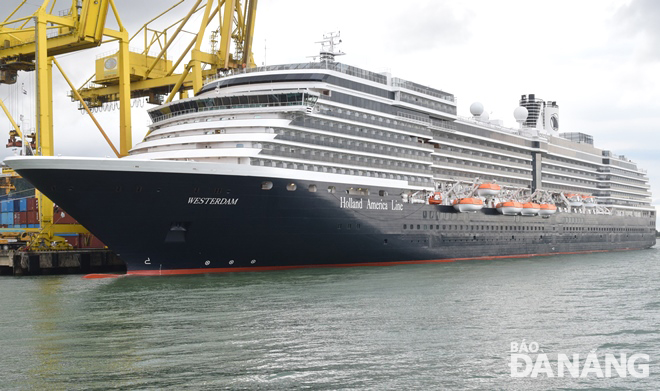 Siêu tàu du lịch biển hạng sang Westerdam cập cảng Tiên Sa, đưa 1.250 du khách xông đất Đà Nẵng - Ảnh: Báo Đà Nẵng |