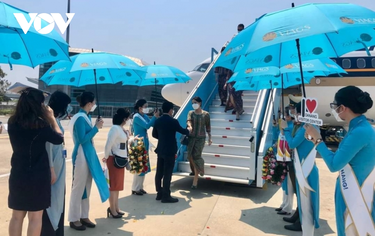 Chuyến bay mang số hiệu SQ172 đưa gần 160 hành khách từ Singapore đã hạ cánh xuống sân bay Quốc tế Đà Nẵng lúc 11h05 trưa nay. Lãnh đạo UBND thành phố Đà Nẵng, ngành du lịch thành phố dự đón và tặng hoa cho hành khách ngay tại sân đỗ máy bay. Trước sự tiếp đón nồng hậu này, nhiều hành khách quốc tế bất ngờ và xúc động.