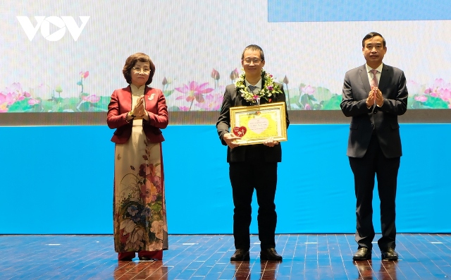 Trao giải "Tỏa sáng Blouse trắng" tặng bác sĩ Phạm Thành Dũng. Ảnh: VOV |