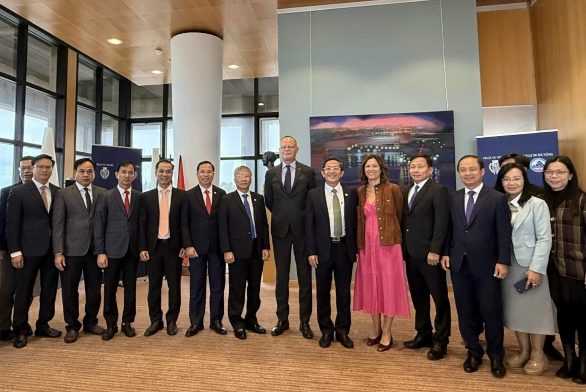 Đoàn công tác thành phố Đà Nẵng chụp hình lưu niệm với đại diện thành phố Le Havre (Pháp). Ảnh: PV/VOV-Miền Trung |