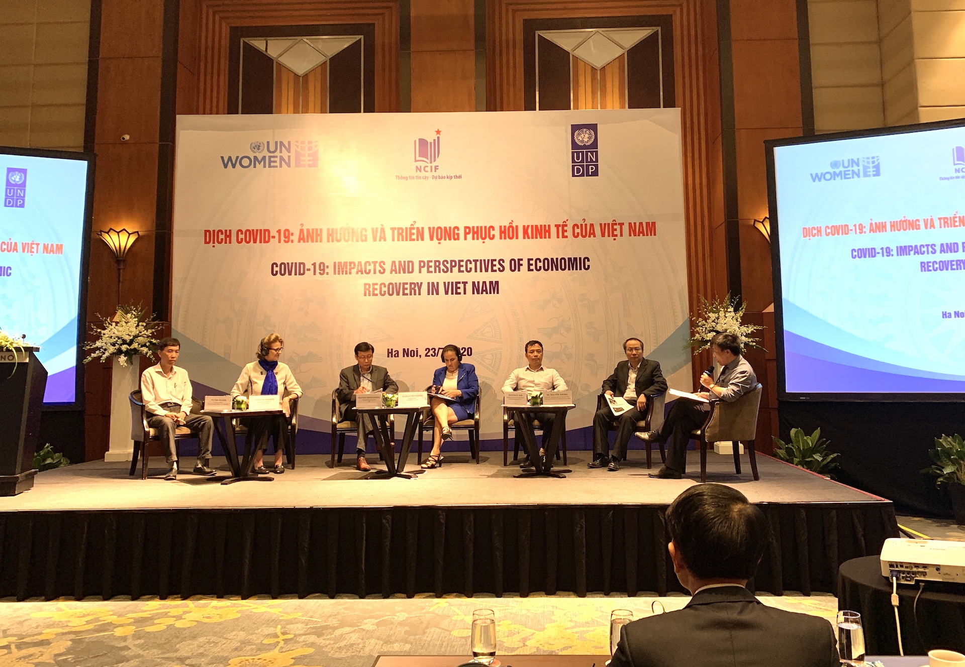 Ngày 23/7 tại Hà Nội, Chương trình phát triển Liên hợp quốc (UNDP), Cơ quan Liên Hợp Quốc về Bình đẳng giới và Trao quyền cho phụ nữ (UN WOMEN) và Trung tâm Phân tích và Dự báo thuộc Viện Hàn lâm Khoa học Xã hội Việt Nam tổ chức hội thảo “Dịch COVID-19: Ảnh hưởng và triển vọng phục hồi kinh tế của Việt Nam”. Sự kiện nhằm công bố báo cáo đánh giá “Tác động kinh tế-xã hội của đại dịch COVID-19 đối với hộ gia đình và doanh nghiệp dễ bị tổn thương ở Việt Nam - Phân tích có tính tới yếu tố giới”.