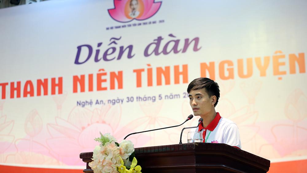 Anh Trần Tuấn Hiệp trình bày tham luận tại Diễn đàn “Thanh niên tình nguyện”. |