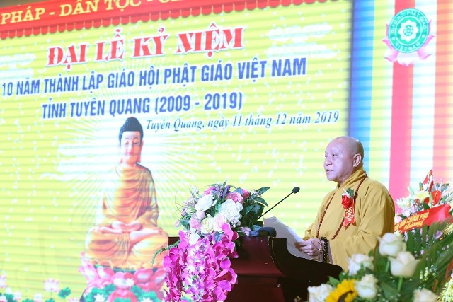 Phát biểu tại lễ kỷ niệm, Hòa thượng Thích Gia Quang, Phó Chủ tịch Hội Đồng Trị sự, Trưởng ban Thông tin – Truyền thông Trung ương Giáo hội Phật giáo Việt Nam, nhấn mạnh: “Giáo hội Phật giáo Việt Nam tỉnh Tuyên Quang qua 10 năm thành lập, xây dựng đã tích cực tham gia vào sự nghiệp xây dựng và bảo vệ Tổ quốc, làm các việc ích đạo, lợi đời.