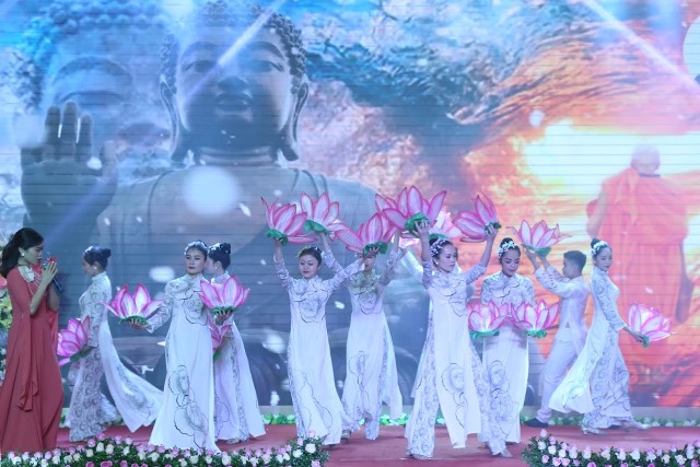 Hòa thượng Thích Gia Quang, Phó Chủ tịch Hội Đồng Trị sự, Trưởng ban Thông tin – Truyền thông Trung ương Giáo hội Phật giáo Việt Nam phát biểu tại buổi lễ