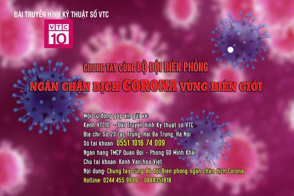 Thực hiện Công điện của Thủ tướng Chính phủ về tăng cường phòng chống dịch Corona, Kênh VTC 10 – Đài Truyền hình Kỹ thuật số VTC kêu gọi đồng bào Việt Nam ở trong nước và Kiều bào ta ở nước ngoài, các doanh nghiệp, các Mạnh Thường Quân chung tay cùng Bộ đội Biên phòng ngăn chặn dịch Corona vùng biên giới.