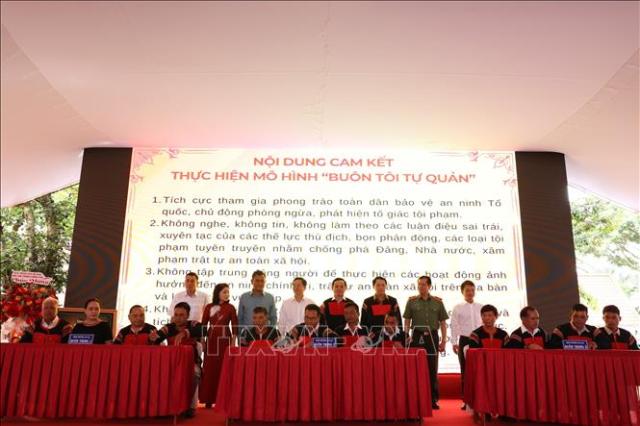 Các buôn tại phường An Lạc, thị xã Buôn Hồ, tỉnh Đắk Lắk, ký cam kết bảo đảm an ninh trật tự. Ảnh: Tuấn Anh/TTXVN |