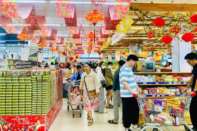 Càng cận Tết, sức mua sắm của người dân bắt đầu tăng cao. Từ tháng 12 năm ngoái, các doanh nghiệp, cơ sở kinh doanh trên cả nước đã chuẩn bị nhiều mặt hàng thiết yếu, như: gạo, dầu ăn, nước mắm…, cùng các mặt hàng Tết, như: bánh mứt, kẹo, đồ uống… để đảm bảo cung ứng đủ cho người tiêu dùng mua sắm Tết.