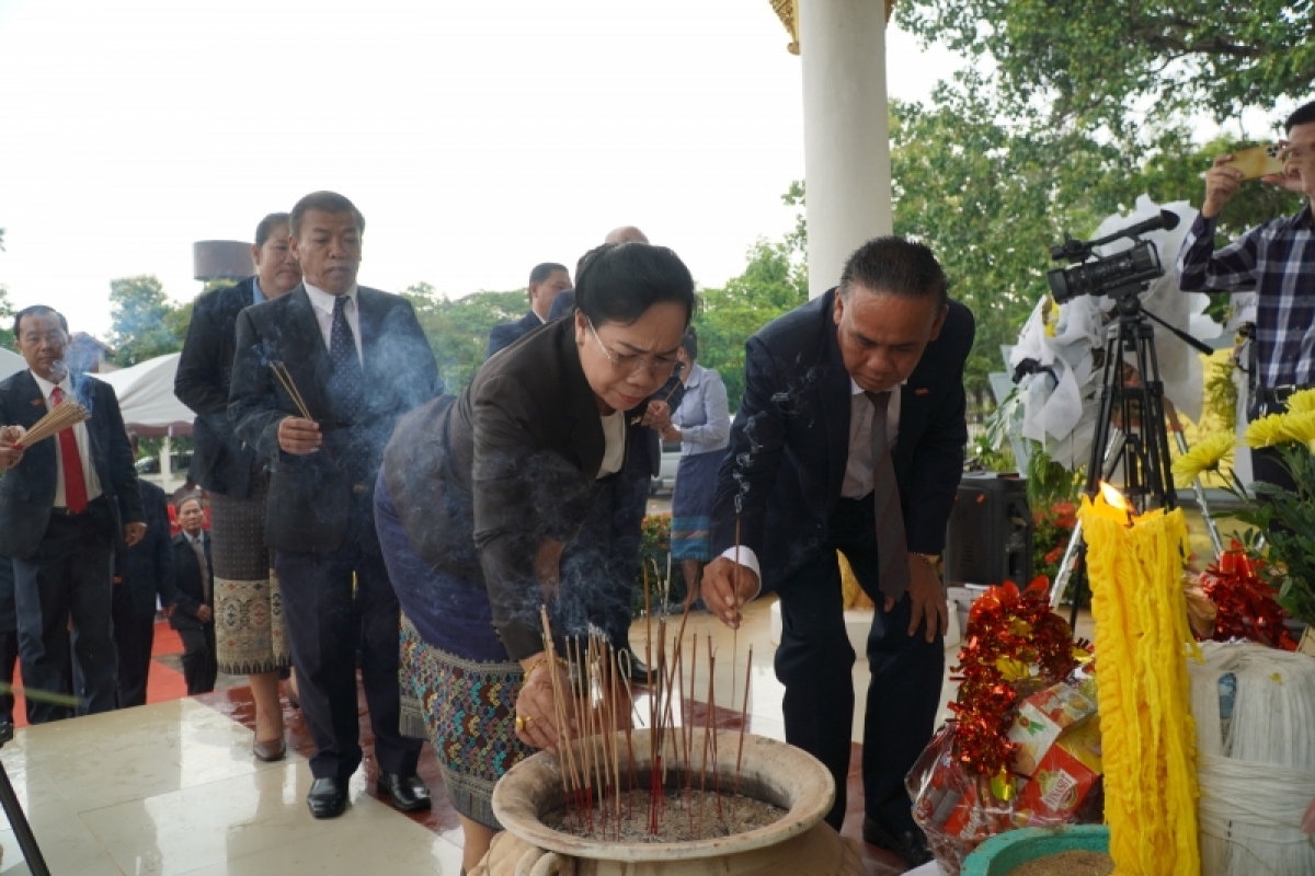 Đại diện chính quyền tỉnh Vientiane thắp hương tưởng niệm các anh hùng liệt sĩ. |