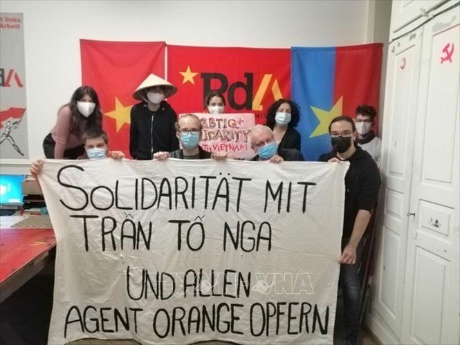 Các thành viên Đảng Lao động Thụy Sĩ cùng thể hiện đoàn kết với bà Trần Tố Nga và các nạn nhân chất độc da cam. Ảnh: TTXVN |