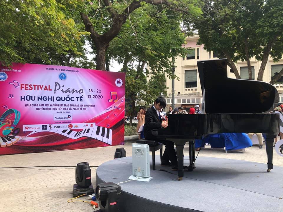 Tiết mục biểu diễn piano ngoài trời ở khu vực hồ Hoàn Kiếm, Hà Nội. |