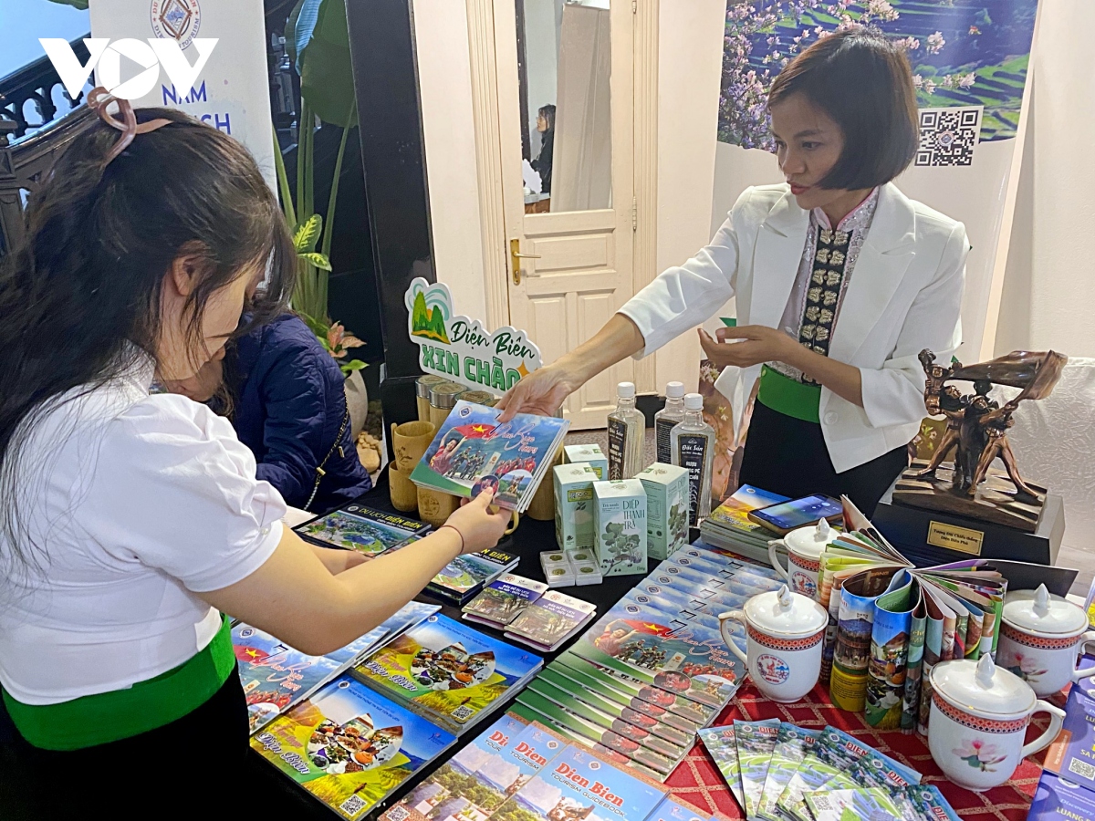 Giới thiệu thông tin, ấn phẩm về du lịch Điện Biên tại Hà Nội - Ảnh: VOV |