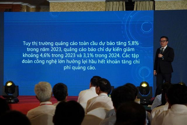 Ông Lê Quốc Minh, Chủ tịch Hội Nhà báo Việt Nam chia sẻ về việc báo chí bị cạnh tranh về thông tin và nguồn thu. Ảnh: Kim Dung |
